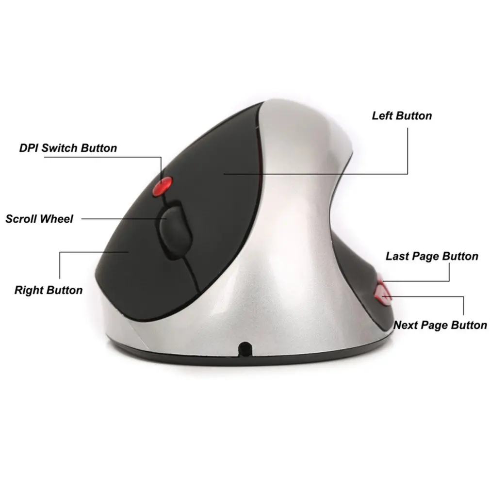 2.4 Ghz Wireless Vertical Mouse Healthy Ergonomic 6 Buttons DPI Switch Optical Mice With Built In B