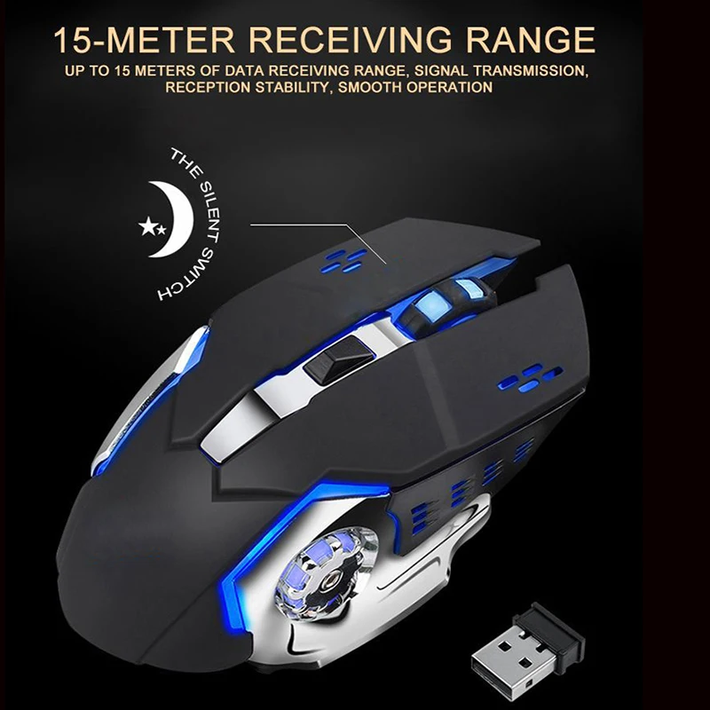 2.4G Wireless 6 Buttons Professional Optical Adjustable 1600DPI Gaming Mouse Rechargeable For chrom