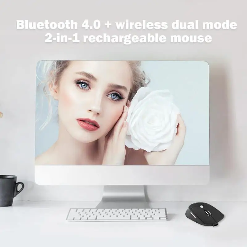 VODOOL Bluetooth 4.0 2.4GHz Wireless Dual Mode Mouse Rechargeable 2400 DPI Optical Gaming Mouse Mic